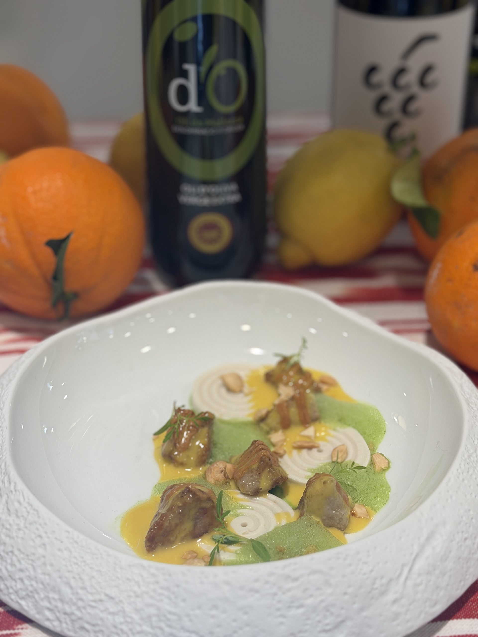 En aquesta darrera edició de Madrid Fusion, el guanyador d’Oleotapa, el cuiner David Méndez (Hotel Castillo Son Vida) va ser l’encarregat de donar forma a la proposta d’emparellament amb l’Oli de Mallorca amb un showcooking organitzat per la denominació d’origen al qual va preparar lletó amb llet d’ametlla i escabetx de mandarina.